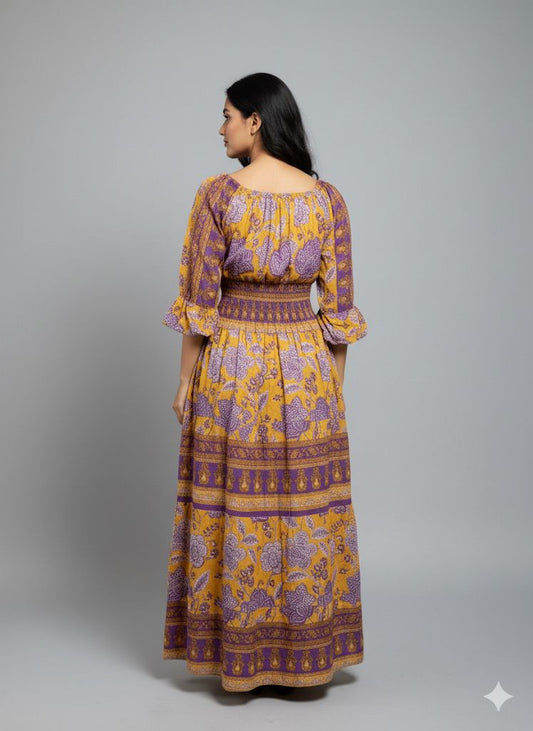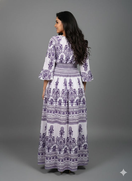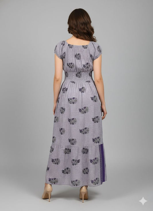 PURPLE PRINTED SMOKE DRESS