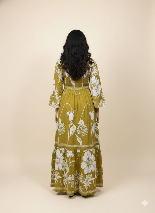 YELLOW FLORAL SMOKE DRESS