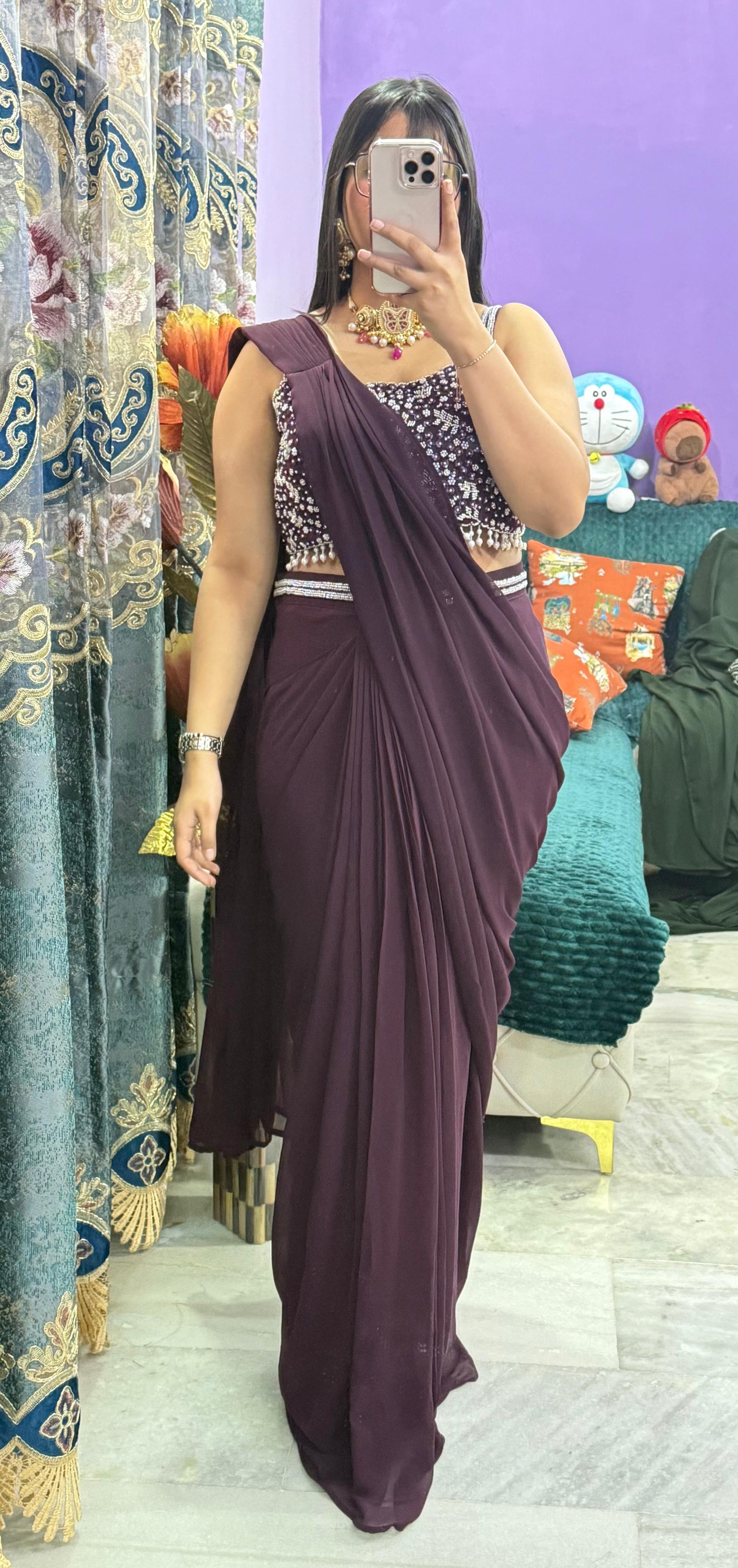 Elevate your ethnic wardrobe with this stunning cape designer saree, a modern twist on a timeless classic. The flowing cape drape adds an unexpected elegance and movement to your look, making it perfect for weddings, celebrations, and special occasions. Crafted with attention to detail, this saree combines traditional saree styling with contemporary design elements that set you apart. The versatile silhouette flatters all body types while the designer aesthetic ensures you'll turn heads at any event. Whether you're attending a festive gathering or making a statement at a formal occasion, this cape saree delivers sophistication and style in one graceful piece.