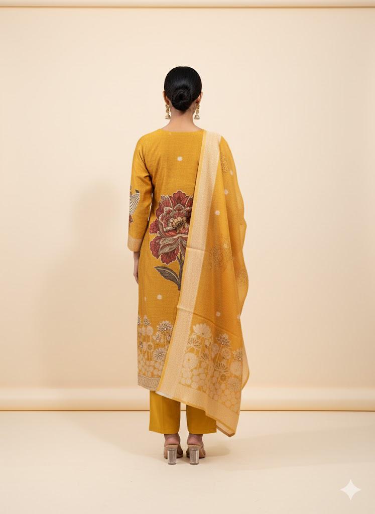 Elevate your ethnic wardrobe with this stunning shahi organza suit that combines timeless elegance with contemporary style. Crafted from pure organza fabric, this piece offers a graceful drape and ethereal quality perfect for special occasions and celebrations. The thoughtful lining ensures comfort and durability, allowing you to wear this beautiful suit with confidence. Whether you're attending a wedding, festival, or festive gathering, this gorgeous ensemble brings sophistication and charm to your look. A versatile addition that makes you feel absolutely radiant.