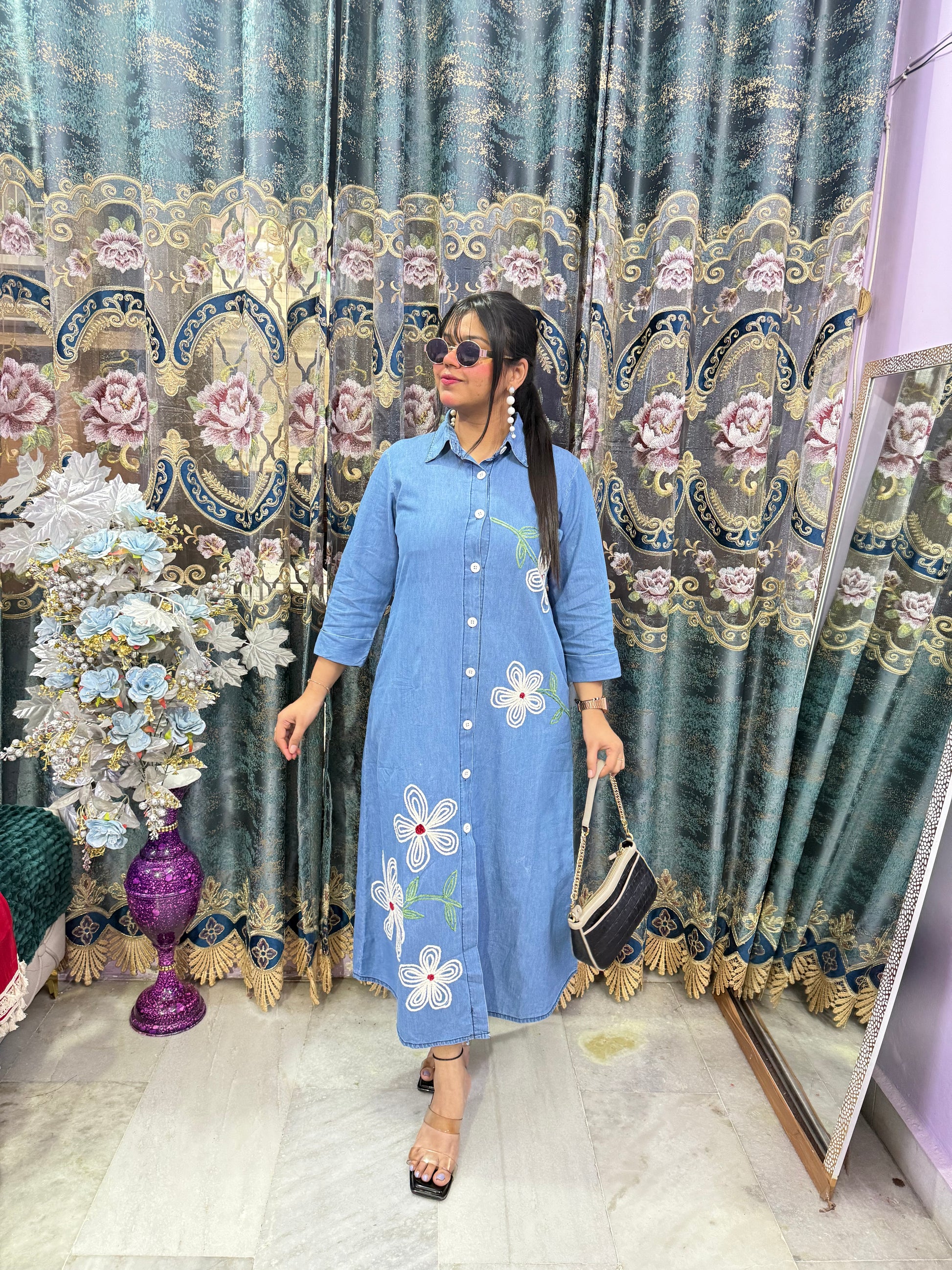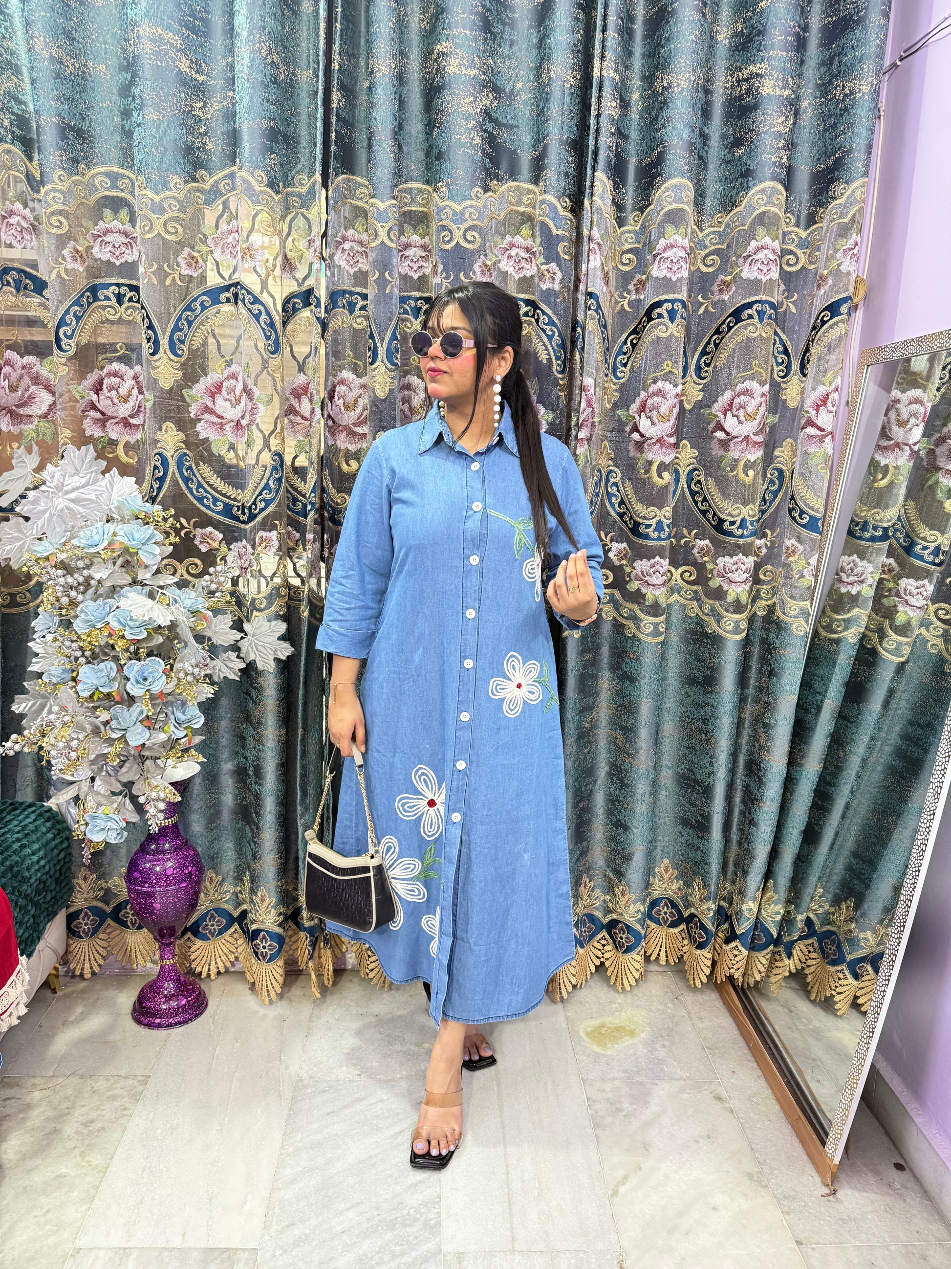 This Long Denim Dress combines timeless style with comfortable wearability. Crafted from durable denim fabric, it offers a flattering fit that suits various occasions, from casual outings to relaxed gatherings. Its length provides elegant coverage while allowing easy movement, making it a versatile addition to your wardrobe. Perfect for layering or wearing on its own, this dress supports your everyday style with both practicality and charm.