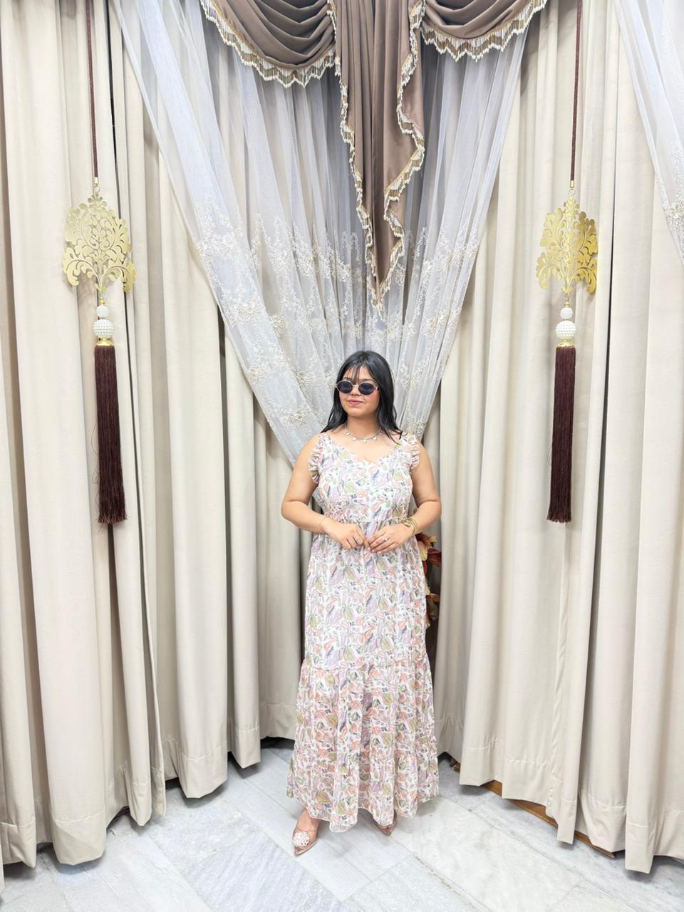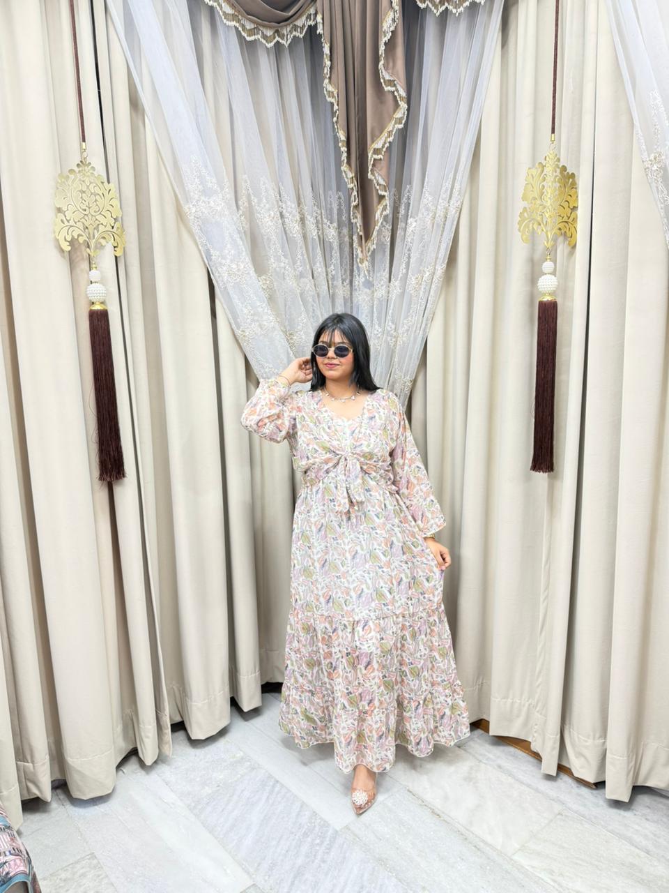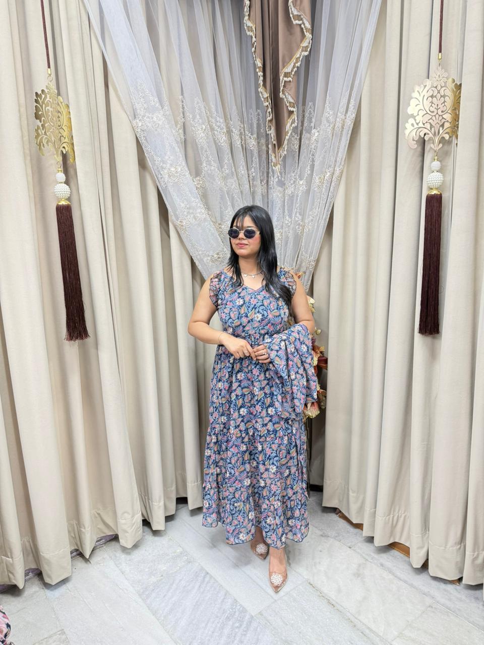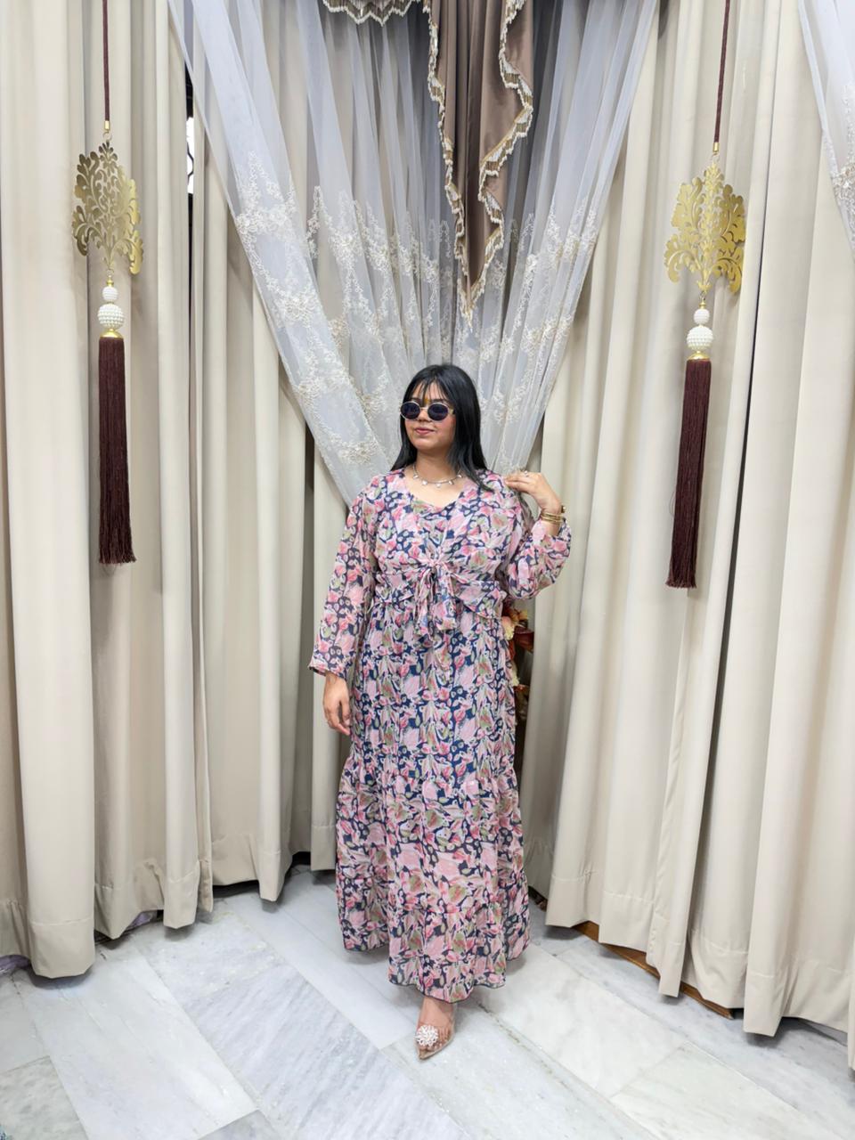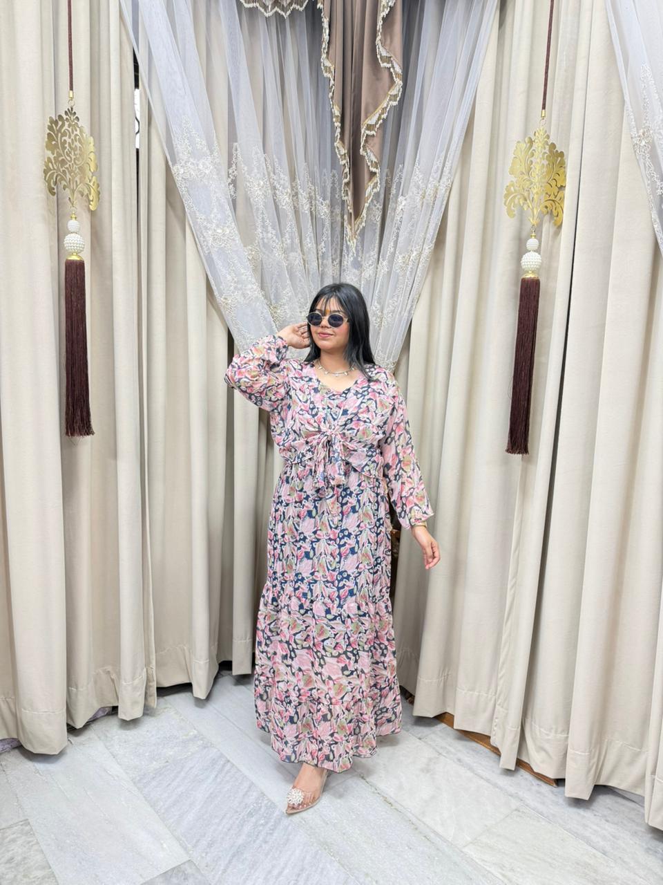 Stay trendy with this Pinterest inspired shrug dress, designed to give you a stylish and elegant look. Made from lightweight georgette fabric, this outfit is perfect for casual outings, parties, and daily wear. The stylish shrug design adds a modern touch, making it a must-have piece for your wardrobe.