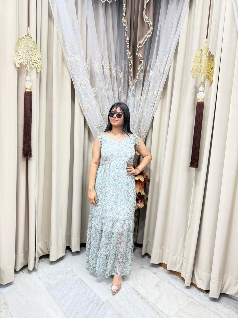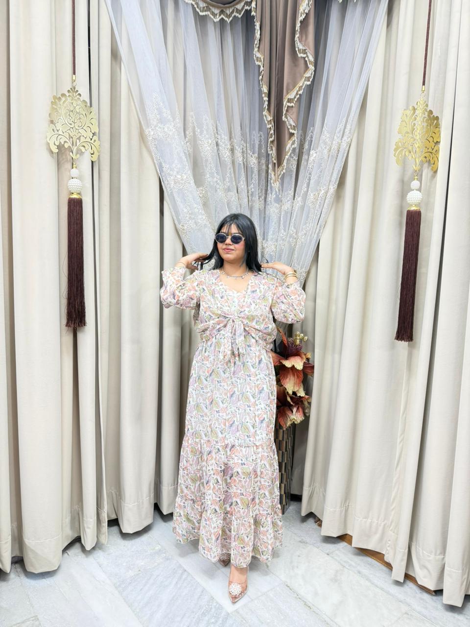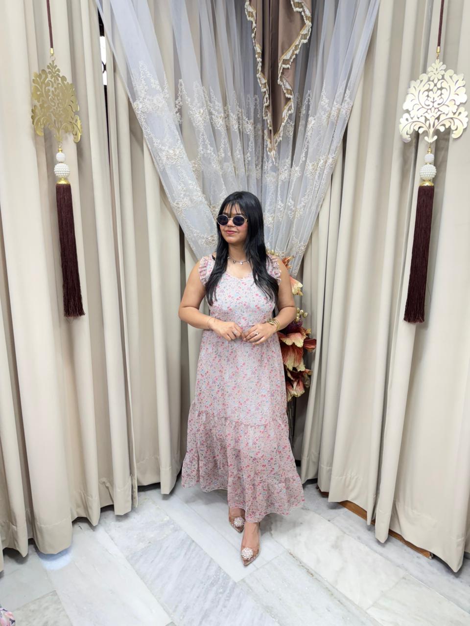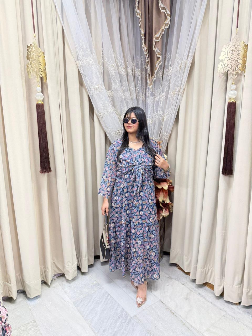 Stay trendy with this Pinterest inspired shrug dress, designed to give you a stylish and elegant look. Made from lightweight georgette fabric, this outfit is perfect for casual outings, parties, and daily wear. The stylish shrug design adds a modern touch, making it a must-have piece for your wardrobe.